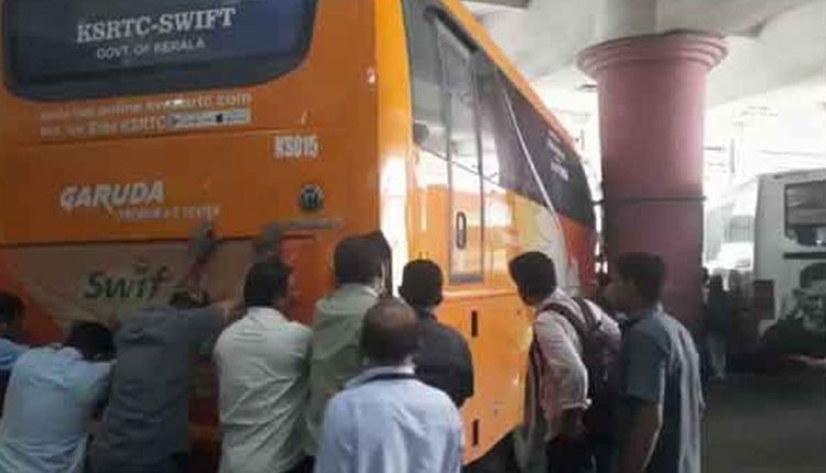 കോഴിക്കോട്: കെഎസ്ആര്ടിസി ബസ് സ്റ്റാന്ഡിലെ തൂണുകള്ക്കിടയില് സ്വിഫ്റ്റ് ബസ് കുടുങ്ങി. മൂന്ന് മണിക്കൂര് നീണ്ട ശ്രമത്തിനൊടുവില് ബസ് പുറത്തിറക്കി. പില്ലര് ഗാര്ഡ് പൊളിച്ചുമാറ്റിയാണ് സ്വിഫ്റ്റ് ബസ് പുറത്തിറക്കിയത്.