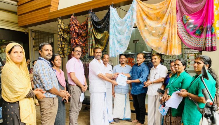 നാദാപുരത്ത് അജൈവ മാലിന്യ ശേഖരണം കച്ചവട സ്ഥാപനങ്ങൾക്ക് വിതരണം ചെയ്യുന്ന നോട്ടീസ് പഞ്ചായത്ത് പ്രസിഡന്റ് വി വി മുഹമ്മദലി ഉൽഘടനം ചെയ്യുന്നു