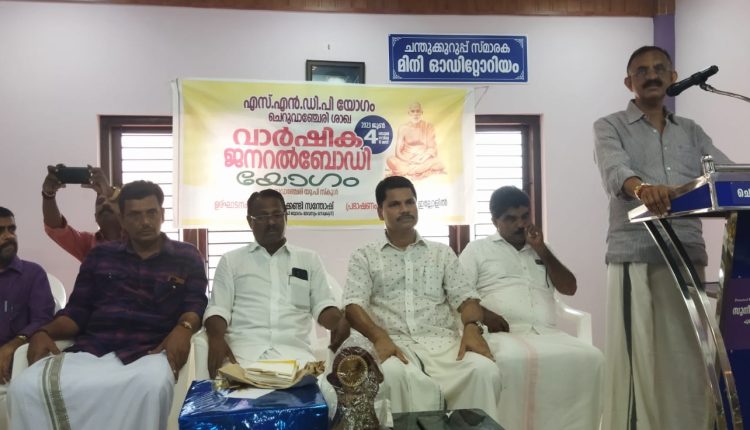 വർഗുരുവിന്റെ ഈശ്വരീയത കൂടി പഠിക്കണെമെന്ന് എസ് എൻ ഡി.പി.യോഗം ദേവസ്വം സെക്രട്ടറി അരയാക്കണ്ടി സന്തോഷ് പറഞ്ഞു. എസ് എൻ സി..പി. ചെറുവാഞ്ചേരി ശാഖ ജനറൽ ബോഡി യോഗം ചെറുവാഞ്ചേരി യു.പി സ്ക്കൂളിൽ ഉദ്ഘാടനം ചെയ്തു സംസാരിക്കുകയായിരുന്നു അദ്ദേഹം. നേരാം വഴി കാട്ടുന്ന ഗുരു അതീന്ദ്രീയ മായ കഴിവിനുടമയാണ്. കഠിന തപസ്സിലൂടെ കുണ്ഡലിനി ഉണർന്ന ഗുരുവിന്റെ സ്ഥാനം ദൈവ സങ്കല്പത്തിനും അപ്പുറമാണെന്നും അദ്ദേഹം പറഞ്ഞു. യോഗത്തിൽ ശാഖ പ്രസിഡണ്ട് പൂവത്താൻ വത്സൻ അധ്യക്ഷത വഹിച്ചു. സന്തോഷ് ഇല്ലോളിൽ പ്രഭാഷണം നടത്തി ,പാനൂർ യൂണിയൻ സെക്രട്ടറി ശശീന്ദ്രൻ പാട്യം ഡയരക്ടർ കെ.കെ സജീവൻ എന്നിവർ സംസാരിച്ചു. ശാഖ സെക്രട്ടറി കെ.കൃഷ്ണൻ റിപ്പോർട്ട് അവതരിപ്പിച്ചു. രാജു എക്കാൽ ചർച്ചയിൽ പങ്കെടുത്ത് സംസാരിച്ചു. വിവിധ പരീക്ഷകളിൽ മികവ് തെളിയിച്ച വിദ്യാർഥികളെ ചടങ്ങിൽ വെച്ച് ഉപഹാരം നല്കി. അനുമോദിച്ചു കെ.കൃഷ്ണൻ സ്വാഗതവും കെ സുരേഷ് ബാബു നന്ദിയും പറഞ്ഞു