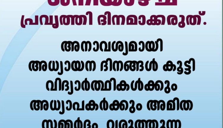 പ്പെട്ടു.കെ.ഇ.ആറിൽ വ്യവസ്ഥ ചെയ്തത് 200 പ്രവൃത്തിദിനങ്ങളാണ്. അധ്യാപകർക്കു ശനിയാഴ്ച്ച അവധി നൽകിയതിനും വെക്കേ