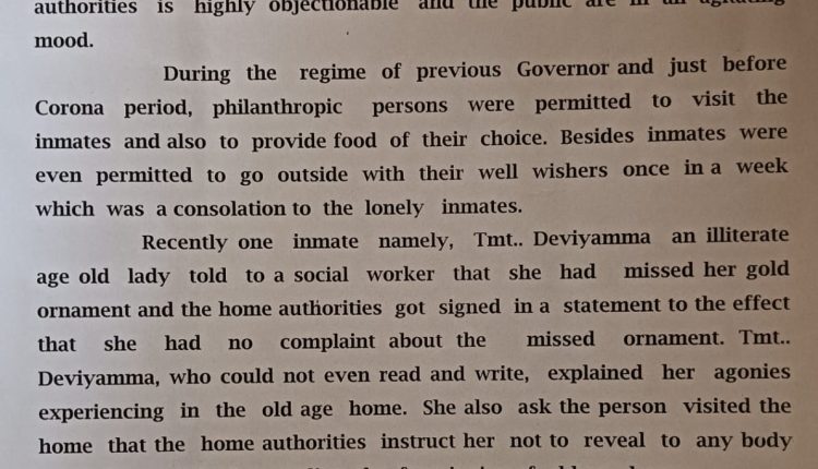 ചൊക്ലിയിൽ വർഷങ്ങളായി ജോലി ചെയ്ത വീട്ടിൽ നിന്ന് ലഭിച്ച പണം കൊണ്ടാണ് രണ്ട് പവന്റെ സ്വർണ്ണമാല ഇവർ വാങ്ങിയത്. വൃദ്ധസദനിൽ നടക്കുന്ന അനിഷ്ടകരമായ കാര്യങ്ങൾ വ്യക്തമാക്കി ലഫ്.ഗവർണ്ണർ ഉൾപ്പെടെയുള്ളവർക്കാണ് പരാതി നൽകിയത്.