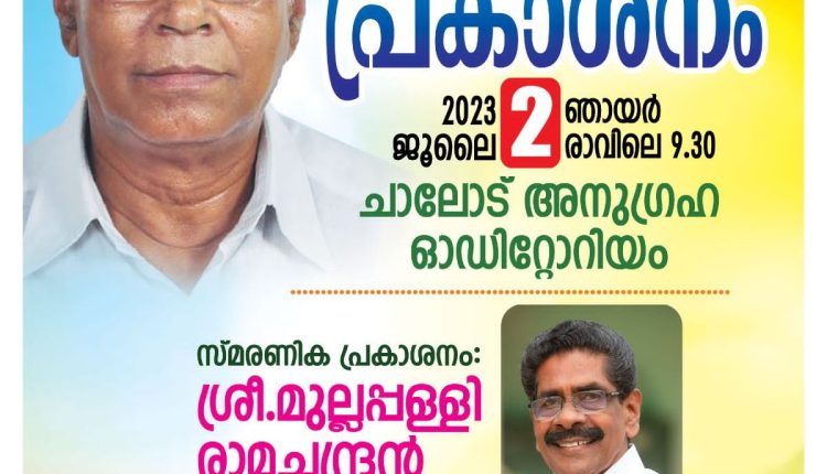 സ്മരണിക പ്രകാശനം മുൻ കേന്ദ്ര ആഭ്യന്തര വകുപ്പ് സഹമന്ത്രി മുല്ലപ്പള്ളി രാമചന്ദ്രൻ നിർവ്വഹിക്കും. മട്ടന്നൂരിലെ വേണു മാസ്റ്റർ അനുസ്മരണ വേദിയുടെ ആഭിമുഖ്യത്തിലാണ് പരിപാടി ഒരുക്കുന്നത്. ജൂലൈ 4 വേണു മാസ്റ്റർ സ്മൃതിദിനമായി ആചരിക്കും.