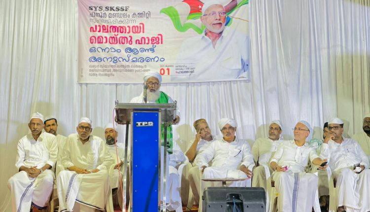 പാനൂർ: സമസ്ത പ്രവാസി സെല് സംസ്ഥാന ട്രഷററും സമസ്ത വിദ്യാഭ്യാസ ബോര്ഡ് ജനറല് കൗൺസിൽ അംഗവും ഉമറലി ശിഹാബ് തങ്ങള് ചാരിറ്റബൾ സൊസൈറ്റി വൈസ് പ്രസിഡന്റും സംസ്ഥാനത്തെ നിരവധി മത സ്ഥാപനങ്ങളുടെ സഹകാരിയും സമസ്തയുടെ മുന്നണി പോരാളിയുമായിരുന്ന പാലത്തായി മൊയ്തു ഹാജിയുടെ ഒന്നാം അനുസ്മരണ ദിനം വിവിധ പരിപാടികളോടെ ആചരിച്ചു. എസ്.വൈ.എസ് , എസ്.കെ.എസ്.എസ്. എഫ് പാനൂർ മേഖല കമ്മിറ്റി പാലത്തായിൽ സംഘടിപ്പിച്ച അനുസ്മരണ സമ്മേളനം സമസ്ത സെക്രട്ടറി എം.ടി അബ്ദുല്ല മുസ്ലിയാർ ഉദ്ഘാടനം ചെയ്തു. എസ്.വൈ.എസ് സംസ്ഥാന വൈസ്. പ്രസിഡന്റ് മലയമ്മ അബൂബക്കർ മുസ്ലിയാർ അധ്യക്ഷനായി. സയ്യിദ് മുഹമ്മദ് കോയ ജമലുല്ലൈലി തങ്ങൾ പ്രാർത്ഥന നടത്തി. സമസ്ത ട്രഷറർ കൊയ്യോട് പി.പി ഉമർ മുസ്ലിയാർ അനുഗ്രഹ പ്രഭാഷണം നടത്തി. സമസ്ത കേന്ദ്ര മുശാവറ അംഗം ടി.എസ് ഇബ്രാഹീം കുട്ടി മുസ്ലിയാർ, എസ്.എം.എഫ് ജില്ലാ ജനറൽ സെക്രട്ടറി അബ്ദുൽ ബാഖി, ഇബ്രാഹീം ബാഖവി പൊന്ന്യം പ്രഭാഷണം നടത്തി. മുസ്തഫ ഹുദവി ആക്കോട് മുഖ്യ പ്രഭാഷണം നടത്തി. റസാഖ് ഹാജി പാനൂർ, ശാഫി ഹാജി പാലത്തായി, എ.പി ഇസ്മാഈൽ ഹാജി, ആർ.വി അബൂബക്കർ യമാനി, സമീർ സഖാഫി, ജംഷീർ വാഫി, ഫൈസൽ മാക്കൂൽ പീടിക, റിയാസ് നെച്ചോളി, മൊയ്തു മുസ്ലിയാർ, നാസർ മുസ്ലിയാർ, ഇ.എം ബഷീർ, ഒ.പി റഫീഖ് ഹാജി, കുഞ്ഞമ്മദ് ഹാജി, ഇർഷാദ് പുല്ലൂക്കര സംസാരിച്ചു.അനുസ്മരണ സമ്മേളനത്തോടനുബന്ധിച്ച് ഖബർ സിയാറത്ത്, മജ്ലിസുന്നൂർ, ഖതമുൽ ഖുർആൻ, പ്രാർത്ഥന സദസ് എന്നിവയുമുണ്ടായി.