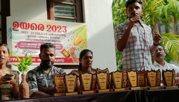 ന്യൂമാഹി: 2022 – 23 അദ്ധ്യായന വർഷത്തെ പരീക്ഷയിൽ ഉന്നത വിജയം കരസ്ഥമാക്കിയ SSLC – +2 വിദ്യാർത്ഥികളെ DYFI കരീക്കുന്ന് – ആൽമരം യൂണിറ്റുകൾ സംയുക്തമായി അനുമോദനം നടത്തി. DYFI തലശ്ശേരി ബ്ളോക്ക് ജോയിന്റ് സെക്രട്ടറി നിധിൻ ഉദ്ഘാടനം ചെയ്തു. ആശംസകൾ അർപ്പിച്ച് ന്യൂമാഹി ഗ്രാമ പഞ്ചായത്ത് 2-ാം വാർഡ് മെമ്പർ ശ്രീ : ടി.എ.ഷർമി രാജ്, സി.കെ.പ്രകാശൻ, DYFI ന്യൂമാഹി മേഖല സെക്രട്ടറി വി.എം.സുബിൻ എന്നിവർ സംസാരിച്ചു. DYFI ആൽമരം യൂണിറ്റ് സെക്രട്ടറി യു. സ്വരൂപ് സ്വാഗതവും, കരീക്കുന്ന് യൂണിറ്റ് പ്രസിഡണ്ട് നിവേദ്യ രവീന്ദ്രൻ അദ്ധ്യക്ഷതയും വഹിച്ചു. 26 വിദ്യാർത്ഥികളെ അനുമോദിച്ചു. മർവ്വ മുനീർ നന്ദി പറഞ്ഞു.