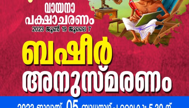 നെയ്യളം : നെയ്യളം യുവശക്തി വായനശാല ഗ്രന്ഥാലയത്തിന്റെ ആഭിമുഖ്യത്തിൽ ജൂൺ 19 ന് ആരംഭിച്ച വായന പക്ഷാചരണം ജൂലൈ 7 ന് സമാപിക്കും. ബഷീർ ദിനത്തിൽ ബഷീർ അനുസ്മരണം നടത്തും. ജൂലൈ 5 ന് വൈകീട്ട് 5.30 ന് പരിപാടി ഉദ്ഘാടനവും അനുസ്മരണവും എഴുത്തുകാരൻ ബാബുരാജ് അയ്യല്ലൂർ നിർവ്വഹിക്കും.