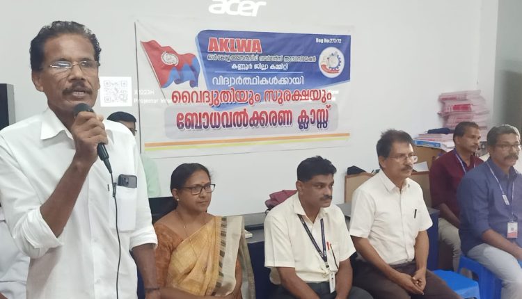 കണ്ണൂർ: ആൾ കേരള ലൈസൻസ്ഡ് വയർമെൻ അസോസിയേഷൻ AK LWA കണ്ണൂർ ജില്ലാ കമ്മിറ്റി വിദ്യാർത്ഥികൾക്കായി വൈദ്യുതിയും സുരക്ഷയും എന്ന വിഷയത്തിൽ ബോധവൽക്കരണ ക്ലാസ്സ് സംഘടിപ്പിച്ചു. കണ്ണൂർ ജില്ലയിൽ വെച്ച് നടക്കുന്ന അസോസിയേഷന്റെ 25ാം സംസ്ഥാന സമ്മേളനത്തിന്റെ പ്രചരണാർത്ഥം, 51ാം സ്ഥാപക ദിനത്തിന്റെ ദിവസമായ ജൂലൈ 14 ന് ബോധവൽക്കരണ ക്ലാസ്സ് ചൊക്ലി രാമവിലാസം ഹയർ സെക്കന്ററി സ്കൂളിൽ ഹെഡ് മാസ്റ്റർ പ്രദീപ് കിനാത്തിയുടെ അദ്ധ്യക്ഷതയിൽ AKLWA സംസ്ഥാന പ്രസിഡണ്ട് എം രഘുനാഥ് ഉൽഘാടനം ചെയ്തു. വൈദ്യുതിയും സുരക്ഷയും എന്ന വിഷയത്തിൽ KSEB പെരിങ്ങത്തൂർ സെക്ഷൻ അസിസ്റ്റന്റ് ഇഞ്ചിനിയർ കെ.കെ ജോബി സാർ ക്ലാസ്സ് നയിച്ചു. തഥവസരത്തിൽ ശ്രുതി ടീച്ചർ സ്വാഗതവും, സ്മിത ടീച്ചർ ആശംസാ പ്രസംഗവും, സ്റ്റാഫ് സെക്രട്ടറി ടി.പി ഗീരീഷ് കുമാർ നന്ദിയും പറഞ്ഞു.