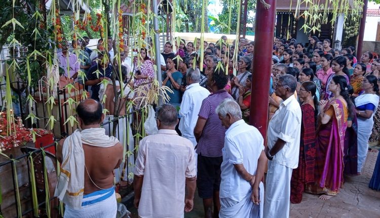 ന്യൂ മാഹി: പെരിങ്ങാടി ശ്രീ കാഞ്ഞിരമുള്ള പറമ്പ് ഭഗവതി ക്ഷേത്രത്തിൽ ആയില്യം നാൾ സമുചിതമായി ആഘോഷിച്ചു. രാവിലെ 6 മുതൽ വൈകുന്നേരം 6 വരെ അഖണ്ഡനാമസങ്കീർത്തനം ഉച്ചക്ക് നാഗപൂജ , മുട്ടസമര്പ്പണം , അന്നദാനം എന്നിവ നടന്നു. ക്ഷേത്രമേൽശാന്തി മാടമന ഈശ്വരൻ നമ്പൂതിരി മുഖ്യകാർമികത്വം വഹിച്ചു. ക്ഷേത്രപ്രസിഡന്റ് ടി പി ബാലൻ, ക്ഷേത്രസെക്രട്ടറി പി . കെ. സതീഷ് കുമാർ, പി. വി അനിൽകുമാർ, ഒ വി. ജയൻ, കണ്ടോത്ത് രാജീവൻ , എം പുഷ്പദാസ് , സന്തോഷ് തുണ്ടിയിൽ, രാജേഷ് കണ്ണോത്ത്, മഞ്ഞാമ്പ്രത്ത് വിജയൻ , ഷാജീഷ് സി ടി കെ, മേച്ചോളിൽ മുകുന്ദൻ, മേച്ചോളില് ശശി എന്നിവർ നേതൃത്വം നൽകി. അടുത്ത ആയില്യം നാള് ആഗസ്ത് 16.ക്ഷേത്രത്തിൽ രാമായണമാസാചരണത്തിന്റെ ഭാഗമായി കര്ക്കിടകം 1 മുതല് 32 വരെ (ജൂലായ് 17 മുതല് ആഗസ്ത് 17) രാവിലെ 6.30 ഗണപതിഹോമം , വൈകിട്ട് 5.30 രാമായണപാരായണം ഓ. വി. വിനയചന്ദ്രൻ, ഹരീഷ് ബാബു രാമായണ പാരായണം നടത്തുന്നു.നക്ഷത്രദിവസത്തിലെ ഗണപതിഹോമത്തിന് മുന്കൂട്ടി ബുക്ക് ചെയ്യവുന്നതാണ്.