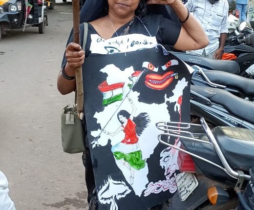 കലാപത്തിന്റെ ക്രൗര്യം വിളിച്ചോതുന്ന ചിത്രങ്ങൾ വസ്ത്രത്തിൽ ചേർത്ത് വെച്ച് ഒരു കൈയിൽ ജ്വലിക്കുന്ന പന്തമേന്തിയാണ് ഒരു പ്രൈമറി സ്കൂൾ പ്രധാനാദ്ധ്യാപികയായ കെ.വി. നീന തെരുവിൽ പ്രതിഷേധിച്ചത്. പൊയിലൂർ സെൻട്രൽ എൽ പി സ്കൂൾ പ്രധാനാദ്ധ്യാപികയാണ് മണിപ്പൂർ കലാപത്തിന്റെ ക്രൗര്യത്തിനെതിനെരെ ജനമന:സാക്ഷിയുണർത്താനായി ജനമദ്ധ്യത്തിലിറങ്ങിയത്.
