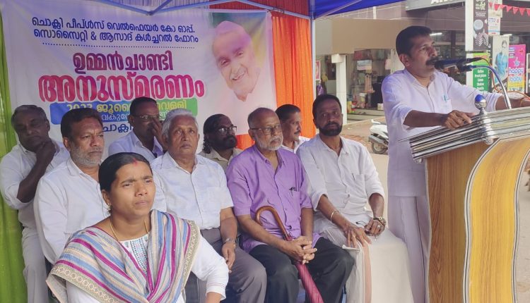 ചൊക്ലി: മുൻ കേരള മുഖ്യമന്ത്രിയും, ജനപ്രിയ നേതാവുമായ ഉമ്മൻ ചാണ്ടിയെ ചൊക്ലി ജനാവലി അനുസ്മരിച്ചു. ചൊക്ലി പീപ്പിൾസ് വെൽഫെയർ കോ-ഓപ്: സൊസൈറ്റിയും, ആസാദ് കൾച്ചറൽ ഫോറവും സംയുക്തമായാണ് ചടങ്ങ് സംഘടിപ്പിച്ചത്.പഞ്ചായത്ത് പ്രസിഡണ്ട് സി.കെ.രമ്യ ടീച്ചർ അദ്ധ്യക്ഷത വഹിച്ചു.സി.രഘുനാഥ്, പി.കെ.മോഹനൻ മാസ്റ്റർ, ഡോ: എ പി.ശ്രീധരൻ, കണ്ണൂർ,നഗരസഭ സ്റ്റാൻ്റിങ്ങ് കമ്മിറ്റി ചെയർമാൻപി.കെ.രാഗേഷ്, ചാലക്കര പുരുഷു ,അഡ്വ.പി.കെ.രവീന്ദ്രൻ,ജയചന്ദ്രൻ കരിയാട്, എം.എംപത്മനാഭൻ ,കെ.പി.വത്സരാജ് സംസാരിച്ചു കെ.പി.ദയാനന്ദൻ മാസ്റ്റർ സ്വാഗതവും, കെ.പ്രദീപ് കമാർ നന്ദിയും പറഞ്ഞു.