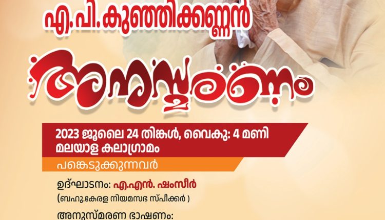 മാഹി: അന്തരിച്ച കലാഗ്രാമം സ്ഥാപകനും, പ്രമുഖ കലാ-സാംസ്ക്കാരിക പ്രവർത്തകനുമായ എ.പി.കുഞ്ഞിക്കണ്ണനെ 24 ന് നാട് അനുസ്മരിക്കുന്നു