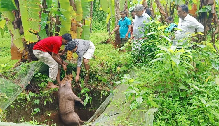കെ.ഷാജി, ടി.കെ പ്രകാശൻ എന്നിവർ കിണറ്റിൽ നിന്ന് കാട്ടുപന്നിയെ