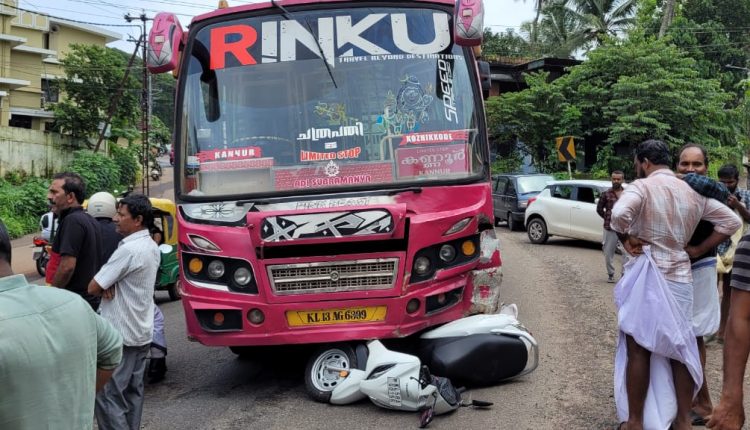 ഗുരുതരമായി പരിക്കേറ്റു. തലശ്ശേരിയിലെ ആസ്പത്രിയിലും തുടർന്ന് കണ്ണൂർ ചാലയിലെ സ്വകാര്യ ആസ്പത്രിയിലും പ്രവേശിപ്പിച്ചു. കോഴിക്കോട് – കണ്ണൂർ റൂട്ടിൽ സർവീസ് നടത്തുന്ന റിങ്കു എന്ന ബസ്സിന്റെ അമിതവേഗമാണ് അപകടകാരണമെന്ന് ദൃക്സാക്ഷികൾ പറഞ്ഞു.സ്വകാര്യബസ്സുകളുടെ മത്സരയോട്ടം അവസാനിപ്പിക്കാൻ ഈ നാട്ടിൽ നിയമസംവിധാനമുണ്ടാ വണമെന്നാണ് നാട്ടുകാരുടെ ആവശ്യം.