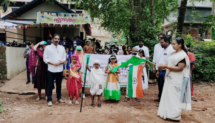 പാനൂർ: പാലത്തായി യു.പി സ്കൂൾ സ്വാതന്ത്യദിനാഘോഷത്തിൻ്റെ ഭാഗമായി സംഘടിപ്പിച്ച മേരാ ഭാരത് മഹാൻ റാലി പാനൂർ നഗരസഭ വൈസ് ചെയർപേഴ്സൺ പ്രീത അശോക് ഫ്ലാഗ് ഓഫ് ചെയ്തു .സജീന്ദ്രൻ പുത്തൂർ ,ടി.സി ആഷ്ലിറാം എന്നിവർ കുട്ടികളോടൊപ്പം ചേർന്ന് ഒരുക്കിയ ‘പ്യാരി ബാപു’ നൃത്ത ചിത്ര വിസ്മയം കുട്ടികൾക്ക് വേറിട്ട കാഴ്ചയായി. പ്രധാന അധ്യാപകൻ പി.ബിജോയ് പതാക ഉയർത്തി. പി.ടി.എ പ്രസിഡൻ്റ് സജീവ് ഒതയോത്ത് സ്വാതന്ത്ര്യ ദിന സന്ദേശം നൽകി. സി.പിരജീഷ് കുമാർ കെ.റോഷ്നി എന്നിവർ സംസാരിച്ചു.