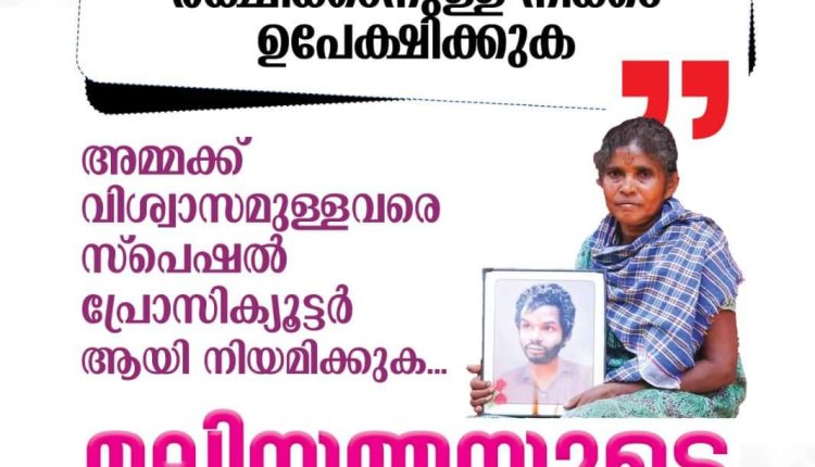 പാലക്കാട്: മധുവിന്റെ കൊലയാളികളെ രക്ഷിക്കാനുള്ള നീക്കം ഉപേക്ഷിക്കുക ,അമ്മക്ക് വിശ്വാസമുള്ളവരെ സ്പെഷൽ പ്രോസിക്യൂട്ടർ ആയി നിയമിക്കുക തുടങ്ങിയ ആവശ്യങ്ങൾ ഉന്നയിച്ച് മല്ലിയമ്മയുടെ സത്യാഗ്രഹം പാലക്കാട് സിവിൽ സ്റ്റേഷന് മുന്നിൽ സപ്തമ്പർ 25 ന് തിങ്കളാഴ്ച രാവിലെ 10 മണിക്ക് നടക്കും.