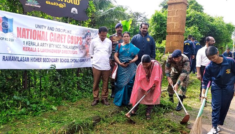 ചൊക്ലി : വൺ കേരള ആർട്ടിലറി ബാറ്ററി തലശ്ശേരി രാമവിലാസം എച്ച് എസ് എസ് യൂണിറ്റിന്റെ നേതൃത്വത്തിൽ ഗാന്ധിജയന്തി ദിനത്തിൽ ശുചീകരണ യജ്ഞം നടത്തി. ഒളവിലം ബണ്ട് റോഡിലാണ് എൻ സി സി കാഡറ്റുകൾ ശുചീകരണ പ്രവർത്തനം നടത്തിയത്. ശുചീകരണ പരിപാടികൾ ചൊക്ലി ഗ്രാമപഞ്ചായത്ത് പ്രസിഡന്റ് ശ്രീമതി രമ്യ ടീച്ചർ ഉദ്ഘാടനം ചെയ്തു.രാമവിലാസം ഹെഡ് മാസ്റ്റർ ശ്രീ പ്രദീപ് കിനാത്തി മാസ്റ്റർ അധ്യക്ഷത വഹിച്ചു. ചടങ്ങിൽ രാമവിലാസം മാനേജർ ശ്രീ മനോജ് കുമാർ , എൻ സി സി ഓഫീസർ ടി പി രാവിദ് ,ഹവിൽദാർ സുനിൽ കുമാർ ,നായിക് സന്തോഷ് കുമാർ സിങ്, ചൊക്ലി ഗ്രാമപഞ്ചായത്തംഗം ശ്രീമതി ശ്രീജ കെ എന്നിവർ സംസാരിച്ചു.
