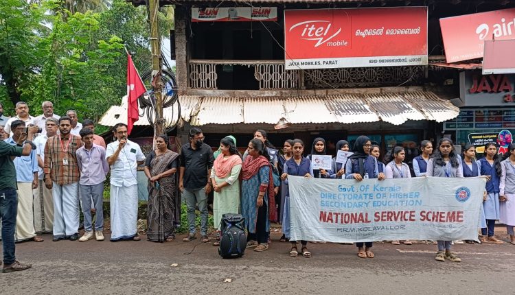 പാറാട് :പി.ആർ എം കൊളവല്ലൂർ ഹയർ സെക്കൻഡറി സ്കൂൾ എൻഎസ്എസ് വളണ്ടിയർമാർ ഗാന്ധിജയന്തി ദിനത്തോടനുബന്ധിച്ച് ഗാന്ധിജി അനുസ്മരണവും രക്തദാനത്തിന്റെ പ്രാധാന്യം വിളിച്ചോതുന്ന സന്നദ്ധ രക്തദാന ശൃംഖലയും സംഘടിപ്പിച്ചു. പാറാട് ടൗണിൽ നടത്തിയ രക്തദാന ശൃംഖല കെ.പി മോഹനൻ എം.എൽ.എ ഉദ്ഘാടനം ചെയ്തു. കുന്നോത്ത്പറമ്പ് ഗ്രാമപഞ്ചായത്ത് പ്രസിഡന്റ് കെ.ലത അധ്യക്ഷത വഹിച്ചു. വാർഡ് മെമ്പർ പി. മഹിജ , കെ.സിഷ, കെ.രവീന്ദ്രനാഥ്, വത്സരാജ് മണലാട്ട് എന്നിവർ ആശംസകളർപ്പിച്ചു സംസാരിച്ചു.