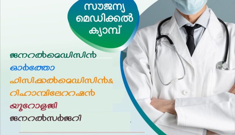 ഫിസിക്കൽ മെഡിസിൻ & റിഹാബിലിറ്റേഷൻ ,യൂറോളജി ,ജനറൽ സർജറിഎന്നീ വിഭാഗങ്ങളിൽ പരിശോധനയുണ്ടാവും.ധർമ്മടം മീത്തലെപ്പീടിക സ്നേഹക്കൂടാണ് പരിശോധനാവേദി.പങ്കെടുക്കുവാൻ താല്പര്യമുള്ളവർ ഒക്ടോബർ 10 നകം പേര് രജിസ്റ്റർ ചെയ്യേണ്ടതാണ്.കൂടുതൽ വിവരങ്ങൾക്കും രജിസ്ടേഷനും9656359277 ,04902359 277 ,9446737456.നമ്പറുകളിൽ ബന്ധപ്പെടാവുന്നതാണ്.