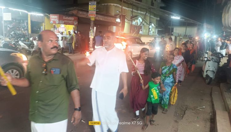 കെ രാഹുൽ കെ പി രാജീവൻ എന്നിവർനേതൃത്വം നൽകി. മൊയിലോം കാരുണ്യ സേവകേന്ദ്രത്തിൽ നിന്നും പൂക്കൊത്തേക്ക് ആണ് പന്തം കൊളുത്തി പ്രകടനം നടന്നത്.