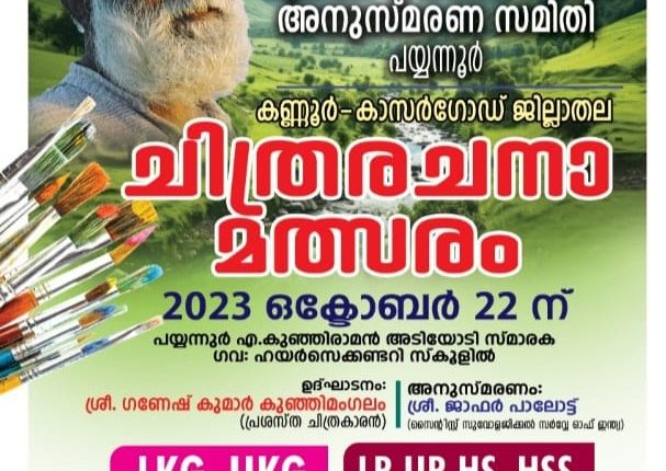 പയ്യന്നൂർ : പ്രൊഫ. ജോൺസി മാഷ് അനുസ്മരണ സമിതി, പയ്യന്നൂരിന്റെ ആഭിമുഖ്യത്തിൽ പയ്യന്നൂർ എ. കുഞ്ഞിരാമൻ അടിയോടി സ്മാരക ഗവ: ഹയർ സെക്കണ്ടറി സ്കൂളിൽ വെച്ച് 2023 ഒക്ടോബർ 22 ന് എൽ കെ ജി , യു കെ ജി, എൽ.പി.യു പി ., എച്ച്.എസ്., എച്ച്. എസ്.എസ് എന്നീ വിഭാഗങ്ങളിൽ ചിത്രരചനാ മത്സരം നടത്തുന്നു. എല്ലാവിഭാഗങ്ങളിലും ആദ്യത്തെ മൂന്ന് സ്ഥാനക്കാർക്ക് ക്യാഷ് അവാർഡുകളും പങ്കെടുക്കുന്ന എല്ലാവർക്കും സർട്ടിഫിക്കറ്റും നൽകുന്നതാണെന്ന് സംഘാടകർ അറിയിച്ചു. ചിത്രരചന പ്രശസ്ത ചിത്രകാരൻ ശ്രീ. ഗണേഷ് കുമാർ കുഞ്ഞമംഗലം ഉദ്ഘാടനം ചെയ്യും. സുവോളജിക്കൽ സർവേ ഓഫ് ഇന്ത്യ സൈന്റിസ്റ്റ് ശ്രീ. ജാഫർ പാലോട്ട് അനുസ്മരണ പ്രഭാഷണം നടത്തും.