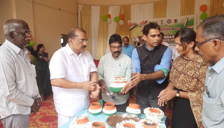 മാഹി: ആസാദി കാ അമൃത് മഹോത്സവത്തിന്റെ സമാപന പരിപാടികളുടെ ഭാഗമായി മാഹിയിൽ വിപുലമായ പരിപാടികൾ സംഘടിപ്പിച്ചു. പരിപാടിയുടെ ഭാഗമായി രാജ്യതലസ്ഥാനത്ത് നിർമ്മിക്കുന്ന അമൃത വാടികയിലേക്കുള്ള മണ്ണ് ജില്ലയിലെ ഗ്രാമങ്ങളിൽ നിന്നും ശേഖരിച്ചു. മാഹീ ജെ എൻ ജി എച്ഛ് എസ് എസിൽ വച്ച് നടന്ന ബ്ലോക്ക്പരിപാടിയിൽ എത്തിച്ചു . മാഹി എം എൽ എ ശ്രീ. രമേഷ് പറമ്പത്ത് പരുപാടി ഉദ്ഘാടനം ചെയ്തു. ചടങ്ങിൽ മാഹി റീജിയണൽ അഡ്മിനിസ്ട്രേറ്റർ ശ്രീ. ശിവരാജ് മീന അധ്യക്ഷത വഹിച്ചു. മാഹി വിദ്യാഭ്യാസവകുപ്പ്, വിവിധ സംഘടനകൾ, എന്നിവയുടെ സഹകരണത്തോടെ ശേഖരിച്ച മണ്ണ് മാഹിയിലെ വിദ്യാലയങ്ങളിൽ നിന്നും അധ്യാപകരും വിദ്യാർത്ഥി പ്രതിനിധികളുംപരിപാടിയിൽ എത്തിച്ചു. തുടർന്ന് എല്ലാ മണ്ണും ഒരുമിച്ച് ചേർത്ത് ഒരു അമൃത കലശത്തിലേക്ക് മാറ്റി. ഈ കലശം ഡൽഹിയിൽ വച്ച് നടക്കുന്ന പാറുവപ്പടിയിലേക്ക് കൊണ്ട് പോകും. പരിപാടിയുടെ ഭാഗമായി പഞ്ച് പ്രാൺ പ്രതിജ്ഞ, ധീര ജാവന്മാരെ ആദരിക്കുകയും ചെയ്തു. മാഹി ചീഫ് എഡ്യൂക്കേഷണൽ ഓഫീസർ ശ്രീ. പി പുരുഷോത്തമൻ സ്വാഗതവും മാഹീ മുനിസിപ്പൽ കമ്മിഷണർ ശ്രീ. എസ് ഭാസ്കരൻ, മാഹി എൻ എസ് എസ് റീജിയണൽ, എൻ എസ് എസ് റീജിയണൽ കോർഡിനേറ്റർ ശ്രീ. ഇ ഗിരീഷ്കുമാർ എന്നിവർ ആശംസയും നെഹ്റു യുവ കേന്ദ്ര ജില്ലാ യൂത്ത് ഓഫീസർ ശ്രീമതി. രമ്യ കെ നന്ദിയും പറഞ്ഞു. പരുപാടിയുടെ ഭാഗമായി ശ്രീരഞ്ജിനി കലാക്ഷേത്രം മാഹി അവതരിപ്പിച്ച മോഹിനിയാട്ടവും ഉദയ കളരി സംഗം അവതരിപ്പിച്ച കളരിപ്പയറ്റും പള്ളൂർ നോർത്ത് എൽ പി സ്കൂൾ വിദ്യാർത്ഥികൾ അവതരിപ്പിച്ച ഡാൻസും വേദിയിൽ അരങ്ങേറി . തുടർന്ന് ജെ എൻ ജി എസിൽ നിന്നും മാഹി പള്ളി വഴി അമൃത് കലശ് യാത്രയും സംഘടിപ്പിച്ചു.