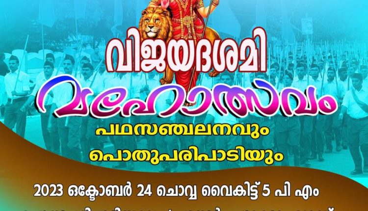 വിജയദശമി മഹോത്സവം PanoorLatest By sneha@9000 On Oct 23, 2023 0 Share പാനൂർ :രാഷ്ട്രീയ സ്വയം സേവക് സംഘ് പാനൂർ ഖണ്ഡിന്റെ ആഭിമുഖ്യത്ത്യൽ വിജയദശമി മഹോത്സവം നടത്തുന്നു.പാനൂരിൽ പഥസഞ്ചലനവും പൊതുപരിപാടിയും സംഘടിപ്പിക്കും.2023 ഒക്ടോബർ 24 ചൊവ്വാഴ്ച വൈകിട്ട് 5 മണിക്ക് പാനൂർ പൂക്കോം റോഡ് ഗുരുക്കൾമെട്ടയിൽ പൊതുപരിപാടി നടക്കും. 0 Share