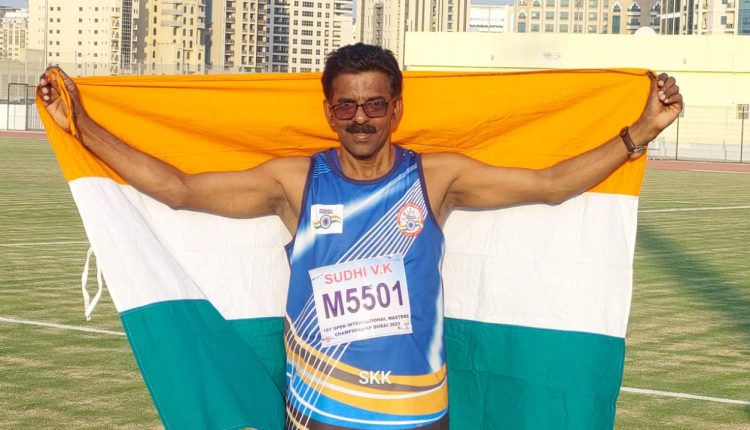 ദുബായ്:ദുബായിൽ 27 വെള്ളിയാഴ്ച ആരംഭിച്ച ഓപ്പൺ ഇന്റർനാഷണൽ മാസ്റ്റേർസ് അത് ലറ്റിക്ക് ചാമ്പ്യൻഷിപ്പിൽ ഇന്ത്യൻ പ്രതിനിധിയായി പങ്കെടുത്ത വി.കെ.സുധിമാസ്റ്റർ 100 മീറ്റർ ഓട്ടത്തിൽ സ്വർണ്ണ മെഡൽ നേടി. കണ്ണൂർ ചൊക്ലി വിദ്യാഭ്യാസ ഉപജില്ല ഓഫീസറായ സുധി പാനൂരിനടുത്ത് പത്തായക്കുന്ന് സ്വദേശിയാണ്.