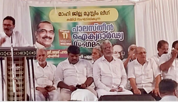 മാഹി: മാഹിജില്ലാ മുസ്ലിം ലീഗ് കമ്മിറ്റിയുടെ ആഭിമുഖ്യ ത്തിൽ ഫലസ്തീൻ ഐക്യ ദാർഢ്യ സംഗമം വെള്ളിയാ ഴ്ച 4.00ന് മാഹി മുനിസി പ്പൽ പള്ളി മൈതാനിയിൽ വെച്ച് നടന്നു.മുസ്ലിംലീഗ് മാഹിജില്ലാ പ്രസിഡണ്ട് പിടികെ റഷീദി ന്റെ അദ്ധ്യക്ഷതയിൽ നടന്ന സംഗമം മുസ്ലിംലീഗ് കേരള സംസ്ഥാന സെക്രട്ടറി അഡ്വ: ഷാഫി ചാലിയം ഉദ്ഘാടന വും മുഖ്യപ്രഭാഷണവും നടത്തി. മാഹി എംഎൽഎ രമേഷ് പറമ്പത്ത് മുഖ്യാതിഥി യായിരുന്നു. ഗ്രാമത്തി ജുമാ മസ്ജിദ് ഖത്തീബ് മുജീബ് റഹ്മാൻ അൻസ്വരി, പാനൂർ മുനിസിപ്പാലിറ്റി കൗൺസി ലർ ആവോലം ബഷീർ, പി യൂസുഫ് എന്നിവർ സംസാ രിച്ചു.