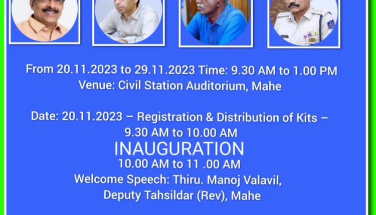 മാഹി: പുതുച്ചേരി സർക്കാറിന്റെ കീഴിലുള്ള റെവന്യു & ഡിസാസ്റ്റർ മേനേജ്മെന്റ് സംഘടിപ്പിക്കുന്ന ആപ്ത മിത്ര വളണ്ടിയർ മാർക്കുള്ള അടിസ്ഥാന പരിശീലന പരിപാടി 20/11/23 ന് തുടങ്ങും. പത്ത് ദിവസം നീണ്ടു നിൽക്കുന്ന പരിശിലന പരിപാടിയുടെ ഉദ്ഘാടനം 20 ന് രാവിലെ 10 മണിക്ക് മാഹി സിവിൽ സ്റ്റേഷൻ ഓഡിറ്റോറിയത്തിൽ രമേശ് പറമ്പത്ത് എം.എൽ.എ നിർവ്വഹിക്കും. റീജ്യണൽ അഡ്മിനിസ്ട്രേറ്റർ ശിവരാജ് മീണ അദ്ധ്യക്ഷത വഹിക്കും. മുൻസിപ്പൽ കമ്മീഷണർ എസ്. ഭാസ്ക്കർ, പോലീസ് സുപ്രണ്ട് രാജശങ്കർ വെള്ളാട്ട് സംബന്ധിക്കുമെന്ന് പരിപാടിയുടെ കോഡിനേറ്ററും ഡെപ്യൂട്ടി തഹസിൽദാറുമായ മനോജ് വളവിൽ അറിയിച്ചു.