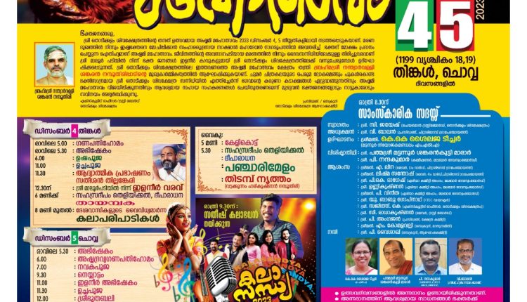 കൂത്തുപറമ്പ : തൊടീക്കളം ശിവക്ഷേത്രത്തിന്റെ തനത് ഉത്സവമായ അഷ്ടമി മഹോത്സവം 2023 ഡിസംബർ 4 ,5 തീയ്യതികളിലായി ക്ഷേത്രം തന്ത്രി ബ്രഹ്മശ്രീ നന്ദ്യാർവള്ളി ശങ്കരൻ നമ്പൂതിരിപ്പാടിന്റെ മുഖ്യകാർമ്മികത്വത്തിൽ ആഘോഷിക്കുന്നു . ഡിസംബർ 4 തിങ്കൾ ഉത്സവച്ചടങ്ങുകൾക്ക് പുറമെ സതീശൻ തില്ലങ്കേരിയുടെ ആദ്യാമിക പ്രഭാഷണവും ,തായമ്പകയും , ദേശവാസികളുടെ വൈവിധ്യമാർന്ന കലാപരിപാടികളും നടക്കും .ഡിസംബർ 5 ചൊവ്വാഴ്ച്ച പഞ്ചാരിമേളവും ,തിടമ്പുനൃത്തവും ,തുടർന്ന് കലാഭവൻ സതീഷ് നയിക്കുന്ന കലാസന്ധ്യയും അരങ്ങേറും .