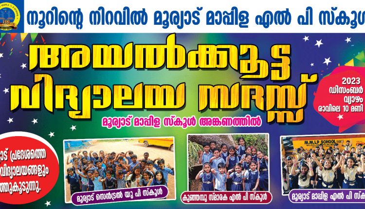 എന്നിവിടങ്ങളിലെ വിദ്യാർത്ഥികൾ ഡിസംബർ 7 വ്യാഴാഴ്ച ഒരുമിക്കുന്നു. മൂര്യാട് മാപ്പിള എൽ.പി.സ്കൂൾ ശതാബ്ദിയാഘോഷത്തിന്റെ ഭാഗമായുള്ള അയൽക്കൂട്ട വിദ്യാലയസദസ്സിലാണ് കുട്ടികൾ ഒത്തുകൂടുന്നത്. നൂറിന്റെ നിറവിലുള്ള വിദ്യാലയം സംഘടിപ്പിക്കുന്ന വിവിധ പരിപാടികളിലൊന്നാണ് അയൽക്കൂട്ടവിദ്യാലയ സദസ്സ് . അയൽക്കൂട്ട വിദ്യാലയസദസ്സിൽ പൊതുവിദ്യാഭ്യാസ വകുപ്പ് ഉന്നതാധികാരികളും സാംസ്കാരിക-സാമൂഹിക പ്രവർത്തകരും അദ്ധ്യാപികാദ്ധ്യാപകരും കുട്ടികൾക്കൊപ്പം സദസ്സിൽ പങ്കാളികളാകും.