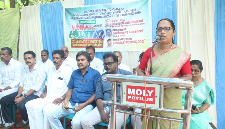 പാനൂർ : വിദ്യാരംഗം കലാ സാഹിത്യ വേദി പാനൂർ ഉപജില്ല തൃപ്രങ്ങോട്ടൂർ, കുന്നോത്ത് പറമ്പ് പഞ്ചായത്ത് തല സർഗോത്സവം 2023 കളിയൂഞ്ഞാൽ പൊയിലൂർ സെൻട്രൽ എൽ.പി സ്കൂളിൽ തൃപങ്ങോട്ടൂർ പഞ്ചായത്ത് പ്രസിഡന്റ് വി.കെ തങ്കമണി ഉദ്ഘാടനം ചെയ്തു.പാനൂർ എ.ഇ.ഒ. ബൈജു കേളോത്ത് അധ്യക്ഷത വഹിച്ച യോഗത്തിൽ കെ.ടി.ബാബുരാജ് മുഖ്യപ്രഭാഷണം നടത്തി. കെ.എം.സുനലൻ,വാർഡ് മെമ്പർ എ.പി. നാണു, എം.പി വിനോദൻ , ടി. അരുൺകുമാർ , മഹമൂദ് എൻ.കെ, മോറോത്ത് കുഞ്ഞമ്മദ് ഹാജി, ഷാജഹാൻ പി , ടി.പി. യൂസഫ് ഹാജി, വി.കെ. ഹസ്സൻ ഹാജി, കെ.വി. നീന , എം.കെ രാജൻ, ടി.പി പവിത്രൻ എന്നിവർ സംസാരിച്ചു. തുടർന്ന് അഭിനയം, കവിത, കഥ, ചിത്രരചന എന്നീ മേഖലകളിൽ ശിൽപ്പശാല നടന്നു.