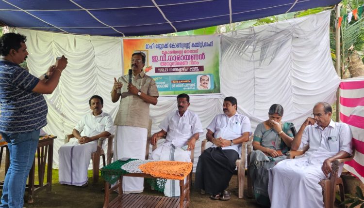 മാഹി: മാഹി ബ്ലോക്ക് കോൺഗ്രസ് കമ്മിറ്റിയുടെ നേതൃത്വത്തിൽ മുൻ കൗൺസിലറും കോൺഗ്രസ് നേതാവുമായ ഇ. വി നാരായണൻ അനുസ്മരണ ദിനം ആചരിച്ചു.പള്ളൂർ ഇ.വി നാരായണന്റെ വസതിയിൽ വെച്ച് നടന്ന പരിപാടി മാഹി ബ്ലോക്ക് കോൺഗ്രസ് പ്രസിഡണ്ട് കെ. മോഹനന്റെ അധ്യക്ഷതയിൽ പുതുച്ചേരി മുൻ ആഭ്യന്തര മന്ത്രി ശ്രീ,ഇ.വത്സരാജ് ഉത്ഘാടനം ചെയ്തു.കണ്ണൂർ ഡി സി സി അംഗം പ്രസീൽ ബാബു ,സത്യൻ കേളോത്ത്,കെ ഹരീന്ദ്രൻ ,ആശാലത,കെ.ശ്രീജേഷ് എന്നിവർ സംസാരിച്ചു.സുരേഷ് കെ സ്വാഗതവും,എ.പത്മനാഭൻ നന്ദിയും പറഞ്ഞു.ഉത്തമൻ തിട്ടയിൽ, മുഹമ്മദ് സർഫാസ്, പി.ശ്യാംജിത്ത്,സന്ദീപ് കെ.വി,അജയൻ പി,കെ.വി ഹരീന്ദ്രൻ , ജിതേഷ് ചാമേരി,വി. ടി ഷംസുദിൻ എന്നിവർ നേതൃത്വം കൊടുത്തു.