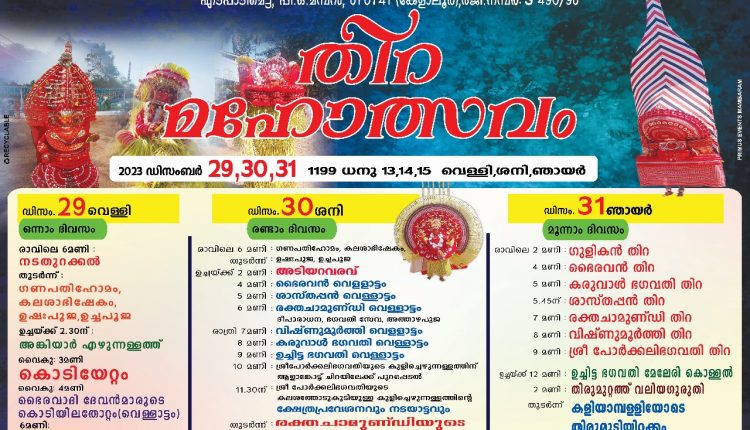 ഉച്ചക്ക് 2 മണിക്ക് അടിയറവരവ് , 4 മണിക്ക് ഭൈരവൻ വെള്ളാട്ടം , 5 മണിക്ക് ശാസ്തപ്പൻ വെള്ളാട്ടം , 6 മണിക്ക് രക്ത ചാമുണ്ഡി വെള്ളാട്ടം എന്നിവ നടക്കും.