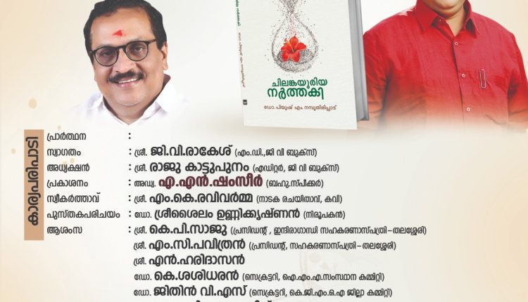 തലശേരി : കണ്ണൂർ ജില്ല മെഡിക്കൽ ഓഫീസറും കവിയും പ്രഭാഷകനുമായ ഡോ. പീയൂഷ് എം നമ്പൂതിരിപ്പാട് രചിച്ച് ജി വി ബുക്സ് പ്രസിദ്ധീകരിക്കുന്ന ചിലങ്കയൂരിയ നർത്തകി എന്ന കവിതാസമാഹാരം ജനുവരി 15 ന് പ്രകാശനം ചെയ്യും. 15 ന് തിങ്കളാഴ്ച വൈകിട്ട് 3.30 ന് തലശ്ശേരി പാരിസ് പ്രസിഡൻസി ഹാളിലാണ് പ്രകാശനച്ചടങ്ങ് നടത്തുന്നത്.
