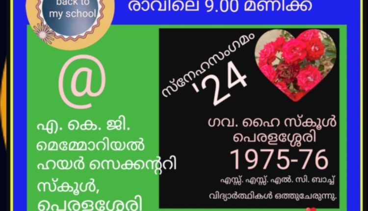 കണ്ണൂർ: എ. കെ. ജി. യുടെ മണ്ണിൽ, ചിരകാല പ്രശസ്തിയാർജിച്ച എ. കെ. ജി. മെമ്മോറിയൽ ഹയർ സെക്കന്ററി സ്കൂൾ, പെരളശ്ശേരിയിലെ പൂർവ വിദ്യാർഥികൾ 47 വർഷങ്ങൾക്കു പിന്നിലുള്ള ഓർമകളുമായി സ്കൂൾ അങ്കണത്തിൽ ഒത്തുചേരുന്നു. 1975-76 വർഷത്തെ എസ്സ്. എസ്സ്. എൽ. സി. വിദ്യാർത്ഥികളുടെ “സ്നേഹതീരം – 76″ കൂട്ടായ്മയുടെ ആഭിമുഖ്യത്തിൽ ജനുവരി 26, വെള്ളിയാഴ്ച നടത്തുന്ന സ്നേഹസംഗമം, സ്കൂൾ പ്രധാനഅദ്ധ്യാപകൻ ശ്രീ പ്രകാശൻ കർത്താ ഉദ്ഘാടനം ചെയ്യും. വിവിധ തുറകളിൽ പ്രാവീണ്യം തെളിയിച്ച തങ്ങളുടെ സഹപാഠികളായ ഉമാദേവി തുരുത്തേരി (2022-23 വർഷത്തെ തത്വമസി പുരസ്കാര ജേതാവ്; കവിത, സാഹിത്യം, നിരൂപണം, ആസ്വാദനം, സാംസ്കാരികം എന്നീ മേഖലകളിൽ സമൂഹമാധ്യമങ്ങളിൽ നിറഞ്ഞു നിൽക്കുന്ന വ്യക്തിത്വം ), മുഹമ്മദ് അലി പി പി (കവി, ഗാനരചയിതാവ് ), നിർമല കെ. ആർ. (ഏറ്റവും നല്ല അദ്ധ്യാപികയ്ക്കുള്ള 2011 വർഷത്തെ ഹൈസ്കൂൾ വിഭാഗം സംസ്ഥാന അവാർഡ് ജേതാവ് ) എന്നിവരെ തഥവസരത്തിൽ ആദരിക്കുന്നു . ബന്ധപ്പെടേണ്ട നമ്പർ : 8652099909/9847599071/9995543172
