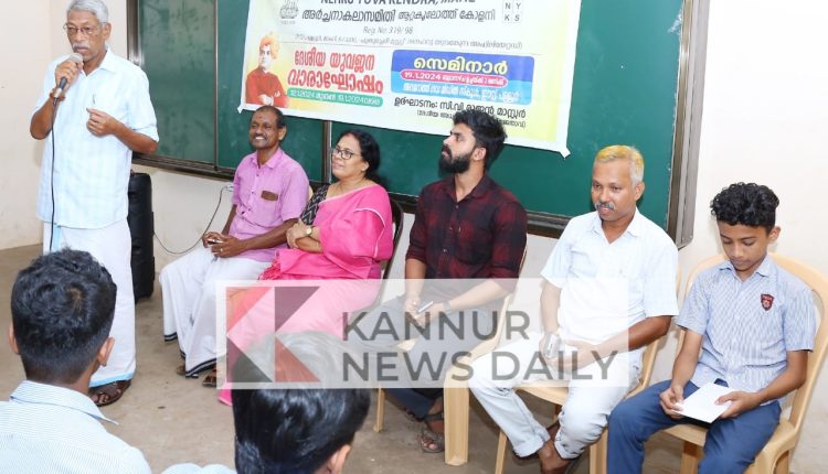 മാഹി: ദേശീയ യുവജന വാരാഘോഷ സമാപനത്തിന്റെ ഭാഗമായി മാഹി നെഹ്റു യുവകേന്ദ്രയുടെയും പള്ളൂർ ആറ്റാകൂലോത്ത് അർച്ചന കലാസമിതിയുടെയും സംയുക്ത ആഭിമുഖ്യത്തിൽ ഈസ്റ്റ് പള്ളൂർ അവറോത് മിഡിൽ സ്കൂളിൽ സെമിനാർ സംഘടിപ്പിച്ചു.ദേശീയ അധ്യാപക അവാർഡ് ജേതാവ് സി വി രാജൻ പെരിങ്ങാടി ഉത്ഘാടനം ചെയ്തു. സ്കൂൾ അഡ്മിനിസ്ട്രേറ്റർ പി സിതാലക്ഷ്മി അധ്യക്ഷതവഹിച്ചു. എൻ മോഹനൻ, കെ പി മഹമൂദ് ആശംസ നേർന്നു. നെഹ്റു യുവ കേന്ദ്ര പ്രതിനിധി ടി സായന്ത് സ്വാഗതവും സ്കൂൾ വിദ്യാർത്ഥി കെ മുഹനന്ദ് നന്ദിയും പറഞ്ഞു.