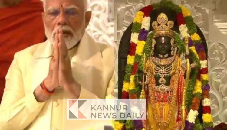 ലഖ്നൗ: അയോധ്യയിലെ ശ്രീരാമവിഗ്രഹം മിഴി തുറന്നു. അഭിജിത് മുഹൂര്ത്തത്തില് ഏറ്റവും വിശേഷപ്പെട്ട സമയമായ ഉച്ചയ്ക്ക് 12:29:08 നും 12:30: 32 നും ഇടയിലാണ് ബാലരാമ വിഗ്രഹം പ്രതിഷ്ഠിക്കുന്ന ചടങ്ങ് നടന്നത്. മുഖ്യയജമാനന് ആയിരുന്ന പ്രധാനമന്ത്രി നരേന്ദ്രമോദിയാണ് പ്രതിഷ്ഠാ ചടങ്ങിന് നേതൃത്വം വഹിച്ചത്. ചടങ്ങ് നടക്കുമ്പോള് ആര്എസ്എസ് മേധാവി മോഹന് ഭാഗവതും മോദിക്കൊപ്പം ഉണ്ടായിരുന്നു. കാശിയിലെ വേദപണ്ഡിതന് ലക്ഷ്മികാന്ത് ദീക്ഷിത് ആണ് ചടങ്ങിന് കാര്മികത്വം വഹിച്ചത്. ചടങ്ങിന് സാക്ഷിയായി 121 ആചാര്യന്മാരും പ്രമുഖ വ്യക്തികളും സന്നിഹിതരായിരുന്നു.പ്രതിഷ്ഠാ ചടങ്ങിലെ നിര്ണായകമായ 84 സെക്കന്ഡിനുള്ളില് ചടങ്ങുകള് പൂര്ത്തിയാക്കി. അഭിജിത് മുഹൂര്ത്തത്തിലെ 84 സെക്കന്ഡ് പ്രതിഷ്ഠാ കര്മ്മത്തിനുള്ള ഏറ്റവും ശുഭകരമായ സമയമാണെന്ന് പുരോഹിതരാണ് കുറിച്ചു നല്കിയത്. പ്രതിഷ്ഠാ ചടങ്ങിനുള്ള ഏറ്റവും നല്ല ഗ്രഹസ്ഥാനമായി കണ്ടാണ് പുരോഹിതര് ഈ സമയം നിര്ദേശിച്ചത്. പ്രതിഷ്ഠാ ചടങ്ങില് പങ്കെടുക്കാന് അയോധ്യയില് എത്തിയ മോദിയെ ഉത്തര്പ്രദേശ് ഗവര്ണര് ആനന്ദിബെന് പട്ടേലും മുഖ്യമന്ത്രി യോഗി ആദിത്യനാഥും ചേര്ന്നാണ് സ്വീകരിച്ചത്. തുടര്ന്ന് ക്ഷേത്രത്തിന്റെ ഗര്ഭഗൃഹത്തില് പ്രവേശിച്ച് ചടങ്ങുകളില് പങ്കെടുക്കുകയായിരുന്നു. രാംലല്ലയ്ക്കുള്ള സമ്മാനങ്ങളായ പട്ടുപുടവയും വെള്ളിക്കുടയും അദ്ദേഹം കൈമാറി.ഒരാഴ്ച നീണ്ട അനുഷ്ഠാനങ്ങളുടെ ഭാഗമായി ഇന്നലെ ശയ്യാധിവാസത്തിനു കിടത്തിയ രാമ വിഗ്രഹത്തെ ഉണര്ത്താനുള്ള ജാഗരണ അധിവാസത്തോടെയാണ് ഇന്ന് ചടങ്ങുകള് തുടങ്ങിയത്. രാവിലെ ജലാഭിഷേകവും നടന്നു. വിവിധ നദികളില്നിന്നും പുണ്യസ്ഥലങ്ങളില്നിന്നും ശേഖരിച്ച 114 കലശങ്ങളില് നിറച്ച ജലംകൊണ്ടാണ് ഞായറാഴ്ച വിഗ്രഹത്തിന്റെ സ്നാനം നടത്തിയത്.മൈസൂരുവിലെ ശില്പി അരുണ് യോഗിരാജ് കൃഷ്ണശിലയില് തീര്ത്ത 51 ഇഞ്ച് വിഗ്രഹമാണ് പ്രതിഷ്ഠ. 5 വയസുള്ള ബാലനായ രാമന്റെ വിഗ്രഹമാണിത്. ഇതോടൊപ്പം ഇതുവരെ താല്ക്കാലിക ക്ഷേത്രത്തില് ആരാധിച്ചിരുന്ന രാംല്ല വിഗ്രഹമടക്കമുള്ളവയും പ്രതിഷ്ഠിച്ചിട്ടുണ്ട്. നാളെ മുതലാണ് പൊതുജനങ്ങള്ക്ക് ദര്ശനം അനുവദിക്കുന്നത്. പ്രതിഷ്ഠാ ചടങ്ങില് പങ്കെടുക്കുന്നതിനായി രാവിലെ മുതല് തന്നെ ക്ഷേത്രത്തിലേക്ക് പ്രത്യേക ക്ഷണിതാക്കള് എത്തിത്തുടങ്ങിയിരുന്നു. കനത്ത സുരക്ഷാ വലയത്തിലാണ് ക്ഷേത്രപരിസരം.380ഃ250 അടിയുള്ള ക്ഷേത്രം പരമ്പരാഗത ഉത്തരേന്ത്യന് നാഗര ശൈലിയിലാണ് നിര്മ്മിച്ചിരിക്കുന്നത്. ഇതിന്റെ 392 തൂണുകളിലും 44 വാതിലുകളിലും ചുവരുകളിലും ദേവീദേവന്മാരുടെ കൊത്തുപണികളുണ്ട്. സമുച്ചയത്തിന്റെ തെക്കുപടിഞ്ഞാറന് ഭാഗത്താണ് കുബേര് തില സ്ഥിതി ചെയ്യുന്നത്. ക്ഷേത്രത്തിനടുത്തായി ഒരു കിണര് ഉണ്ട്. ഏറെ പഴക്കമുള