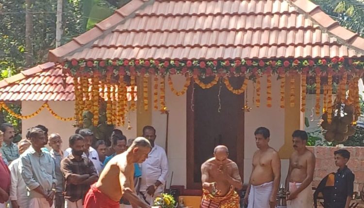 പൊയിലൂർ :പൊയിലൂർ തെക്കയിൽ തറവാട്ടിൽ തലമുറകളായി ആരാധിച്ചിരുന്ന മുത്തപ്പൻ്റെയും ഗുരുകാരണവരുടേയും സങ്കല്പമുള്ള പടിഞ്ഞീറ്റ പ്രശ്നവിധിപ്രകാരം ശ്രീമുത്തപ്പൻ മടപ്പുരയായും ദേവിസ്ഥാനമായും പുനർനിർമ്മിച്ചതിൻ്റെ പ്രതിഷ്ഠാകർമ്മം ശദിലേഷ് മടയൻ്റെ മുഖ്യകാർമ്മികത്വത്തിൽ നടത്തി. വെണ്ടിലോറ്റ ഇല്ലത്ത് നാരായണൻ നമ്പുതിരിയുടെ കാർമ്മികത്വത്തിൽ ഗണപതി ഹോമവും നടത്തി. തുടർന്ന് വൈകുന്നേരം മുത്തപ്പൻ വെള്ളാട്ടവും നടന്നു.വി.പി ബാലൻ മാസ്റ്റരുടെ അധ്യക്ഷതയിൽ നടന്ന ആധ്യാത്മിക സദസ്സിൽ ഗിരീഷ് കെ. പണിക്കർ പ്രഭാഷണം നടത്തി. കുടുംബത്തിലെ മുതിർന്ന അംഗങ്ങളെ ചടങ്ങിൽ ആദരിച്ചു.എൻ. രാഘവൻ,കെ.സി കുഞ്ഞിക്കണ്ണൻ മാസ്റ്റർ,