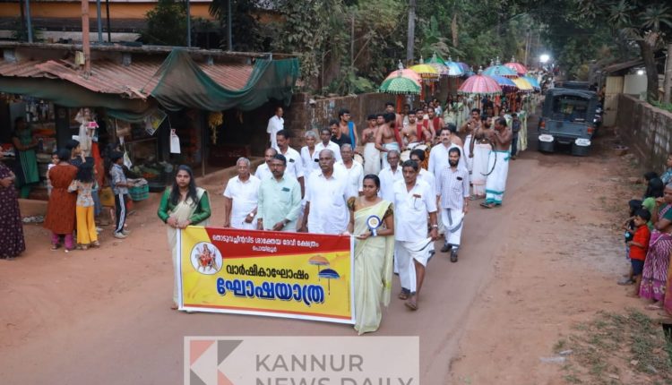പാനൂർ: പൊയിലൂർ തൊടു വച്ചീന്റവിട ശാക്തേയ ദേവീ ക്ഷേത്രം 12-ാം വാർഷിക മഹോത്സവത്തോടനുബന്ധിച്ച് ഇന്നലെ വൈകീട്ട് ഘോഷയത്ര നടന്നു. വടക്കേ പൊയിലൂർ കൊറ്റുമ്മൽ ഗുളികൻ – കുട്ടിച്ചാത്തൻ ദേവസ്ഥാനിൽ നിന്നും ആരംഭിച്ച ഘോഷയാത്ര സന്ധ്യയോടെ ക്ഷേത്രത്തിലെത്തി. താലപ്പൊലി , മുത്തുക്കുട , ബാലികാ നൃത്തം , വാദ്യ മേളം, തുടങ്ങി വൈവിധ്യമാർന്ന പരിപാടികളോടെ നടന്ന ഘോഷയാത്രയിൽ നിരവധി പേർ പങ്കെടുത്തു.