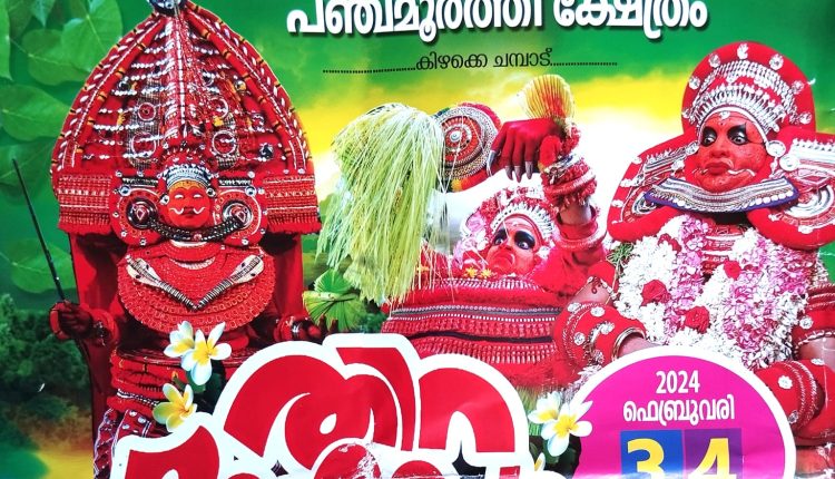 പാനൂർ: കിഴക്കെ ചമ്പാടിലെ പുണ്യ പുരാതനക്ഷേത്രമായ കണിയേളീൻ്റവിട ഭൈരവാദി പഞ്ചമൂർത്തി ക്ഷേത്രത്തിലെ തിറ മഹോത്സവം 2024 ഫെബ്രുവരി 3,4 (1199 മകരം 20,21) ശനി, ഞായർ ദിവസങ്ങളിൽ നടക്കും .