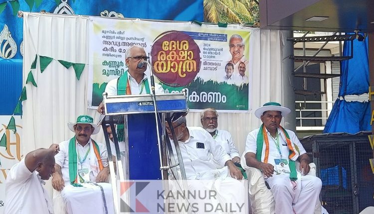 പാനൂർ : മുസ്ലിം ലീഗ് കണ്ണൂർ ജില്ലാ പ്രസിഡണ്ട് അബ്ദുൽ കരീം ചേലേരി നയിക്കുന്ന ദേശരക്ഷാ യാത്രക്ക് മീത്തലെ ചമ്പാട് സ്വീകരണം നൽകി. താരാ ജംഗ്ഷനിൽ വച്ച് ജാഥയെസ്വീകരിച്ചാനയിക്കുകയായിരുന്നു.പള്ളിക്കണ്ടി യൂസഫ് ഹാജി അധ്യക്ഷത വഹിച്ചു.കാവിൽ മഹമൂദ് സ്വാഗതം പറഞ്ഞു.അൻസാരി തില്ലങ്കേരി,കെ.ടി സഹദുള്ള,മഹമൂദ് കടവത്തൂർഅഡ്വ.കെ.എ ലത്തീഫ്,ടി എ തങ്ങൾ, ഇബ്രാഹിം മുണ്ടേരി,