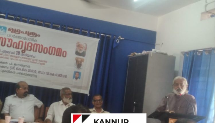 തലശേരി : മുദ്രപത്രം മാസികയുടെ ആഭിമുഖ്യത്തിൽ സ്ഥിരവരിക്കാരുടെയും എഴുത്തുകാരുടെയും സൗഹൃദ സംഗമം നടത്തി. പി.ജനാർദ്ദനന്റെ അദ്ധ്യക്ഷതയിൽ ചേർന്ന സംഗമം കെ.കെ. മാരാർ ഉദ്ഘാടനം ചെയ്തു. തലശ്ശേരിയുടെ മാദ്ധ്യമ പാരമ്പര്യം എന്ന വിഷയത്തിൽ അദ്ദേഹം പ്രഭാഷണം നടത്തി. കോവിഡാനന്തര ആരോഗ്യപ്രശ്നങ്ങൾ എന്ന വിഷയത്തിൽ ഡോ.വി.കെ.രാജീവൻ ക്ലാസെടുത്തു .എം.കെ രാജു , ഒ.പി.ശൈലജ ,