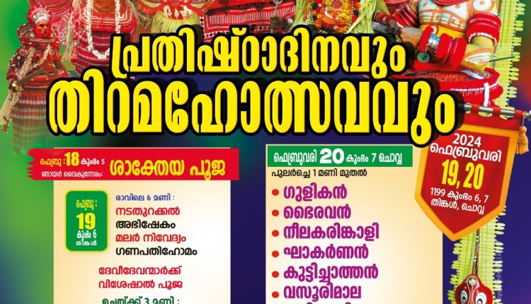 നീർവ്വേലി: നീർവ്വേലി തട്ടുപറമ്പ് ശ്രീ ഗുരുനാഥ ക്ഷേത്രം പ്രതിഷ്ഠാദിനാഘോഷവും തിറമഹോത്സവവും ഫെബ്രുവരി 19 , 20 തിങ്കൾ , ചൊവ്വ ദിവസങ്ങളിൽ നടക്കും. 19 ന് തിങ്കളാഴ്ച ക്ഷേത്ര പൂജാ ചടങ്ങുകൾക്ക് പുറമെ ഉച്ചക്ക് 3 മണിക്ക് മലയിറക്കം, മുത്തപ്പൻ വെള്ളാട്ടം , തുടർന്ന് ദേവീ ദേവൻമാരുടെ വെള്ളാട്ടങ്ങൾ തുടങ്ങിയ വ നടക്കും. 20 ന് ചൊവ്വാഴ്ച അതിരാവിലെ ഒരു മണി മുതൽ ഗുളികൻ , ഭൈരവൻ , നീലക്കരിങ്കാളി , ഘണ്ടാകർണ്ണൻ , കുട്ടിച്ചാത്തൻ , വസൂരിമാല , കരിങ്കാളി , വിഷ്ണുമൂർത്തി, കരുവാൾ ഭഗവതി , പൂക്കുട്ടി ശാസ്തപ്പൻ , ഉച്ചിട്ട ഭഗവതി എന്നീ ആരാധനാ മൂർത്തികളുടെ തിറയാട്ടം നടക്കും.
