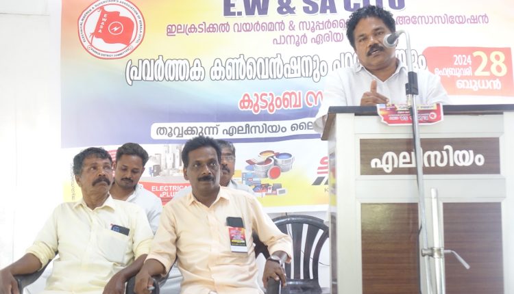 പാനൂർ : ഇലക്ട്രിക് വയർമെൻ ആൻറ് സൂപ്പർ വൈസേഴ്സ് അസോസിയേഷൻ പാനൂർ ഏരിയാ കമ്മിറ്റി പ്രവർത്തക കൺവെൻഷനും, പഠന ക്ലാസും, കുടുംബ സംഗമവും നടത്തി. തൂവക്കുന്ന് എലീസിയം ലൈബ്രറി ഹാളിൽ നടന്ന സമ്മേളനത്തിൽ നിരവധിയംഗങ്ങൾ പങ്കെടുത്തു. സി ഐ ടി യു പാനൂർ ഏരിയാ പ്രസിഡണ്ട് കെ.കെ സുധീർ കുമാർ ഉദ്ഘാടനം ചെയ്തു. വാസു അധ്യക്ഷനായി. സെക്രട്ടറി ബാബു കാറ്റാടി സംഘടന റിപ്പോർട്ട് അവതരിപ്പിച്ചു. കെ.കെ ജയരാജൻ, വി.വിവേക് എന്നിവർ എർത്തിംങ്ങും, ടെസ്റ്റുകളും വിഷയത്തിൽ ക്ലാസെടുത്തു.