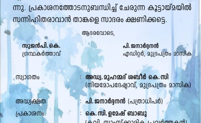 തലശ്ശേരി: സുജൻ പി.കെ എഴുതി , മുദ്രപത്രം മാസിക പ്രസിദ്ധീകരിക്കുന്ന , സ്വപ്നാടനം ചെറുകഥാസമാഹാരം മാർച്ച് 9 ശനിയാഴ്ച വൈകിട്ട് 3 മണിക്ക് തലശ്ശേരി പാർക്കോ റസിഡൻസിയിൽ നടക്കും. പത്രാധിപർ പി ജനാർദ്ദനന്റെ അദ്ധ്യക്ഷതയിൽ ചേരുന്ന യോഗത്തിൽ കവിയും സാംസ്കാരിക പ്രവർത്തകനുമായ കെ.സി. ഉമേഷ് ബാബു പുസ്തകപ്രകാശനം നിർവ്വഹിക്കും. ഉത്തമരാജ് മാഹി പുസ്തകപരിചയം നടത്തും. സി.പി. ഹരീന്ദ്രൻ , വി പി.സുരേഷ് ബാബു , സുരേഷ് കോമത്ത് , ചൂര്യയി ചന്ദ്രൻ , വി ഇ കുഞ്ഞനന്തൻ എന്നിവർ ചർച്ചയിൽ പങ്കെടുക്കും. ഗ്രന്ഥകാരൻ പി.കെ.സുജൻ പ്രസംഗിക്കും. അഡ്വ.കെ.സി. മുഹമ്മദ് ശബീർ സ്വാഗതവും കതിരൂർ ടി കെ ദിലീപ് കുമാർ നന്ദിയും പറയും