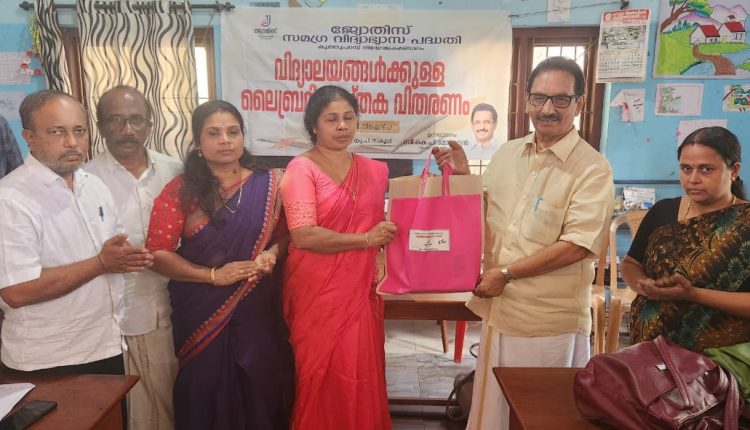 പാനൂർ: കൂത്തുപറമ്പ് നിയോജകമണ്ഡലം ജ്യോതിസ് വിദ്യാഭ്യാസ പദ്ധതിയുടെ ഭാഗമായി മണ്ഡലത്തിലെ 147 വിദ്യാലയങ്ങൾക്കുമുള്ള ലൈബ്രറി പുസ്തകങ്ങളുടെ വിതരണ ഉദ്ഘാടനം പാട്യം വെസ്റ്റ് യുപി സ്കൂളിൽ കെ പി മോഹനൻ എം എൽ എ നിർവഹിച്ചു. പാട്യം ഗ്രാമപഞ്ചായത്ത് പ്രസിഡണ്ട് എൻ വി ഷിനിജ അധ്യക്ഷത വഹിച്ചു. കൂത്തുപറമ്പ് ഉപജില്ലാ വിദ്യാഭ്യാസ ഓഫീസർ പി പി സുധ പുസ്തകങ്ങൾ ഏറ്റുവാങ്ങി. പ്രഥമാധ്യാപിക പി.ലിജി, സ്റ്റാഫ് സെക്രട്ടറി ആർ.നിഷ, തൃക്കണ്ണാപുരം വെസ്റ്റ് എൽ പി സ്കൂൾ പ്രഥമാധ്യാപകൻ വി നിധീഷ് എന്നിവർ പ്രസംഗിച്ചു. ജ്യോതിസ് കോ- ഓർഡിനേറ്റർ ദിനേശൻ മഠത്തിൽ സ്വാഗതവും ഇ. സുരേഷ് ബാബു നന്ദിയും പറഞ്ഞു. കെ.പി.മോഹനൻ എം.എൽ.എയുടെ പ്രത്യേക വികസന നിധിയിൽ നിന്നും മൂന്ന് ലക്ഷം രൂപ വകയിരുത്തിയാണ് മണ്ഡലത്തിലെ മുഴുവൻ വിദ്യാലയങ്ങൾക്കും പുസ്തകം നൽകുന്നത്.