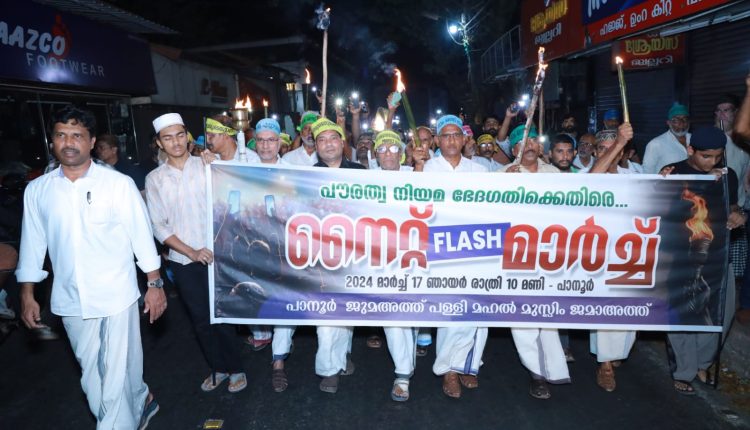 പാനൂർ : പൗരത്വ ഭേദഗതി ബില്ലിനെതിരെ പാനൂരിൽ മഹല്ല് കമ്മിറ്റിയുടെനേതൃത്വത്തിൽ നൈറ്റ് മാർച്ച് നടത്തി. ജുമഅത്ത് പള്ളി മഹല്ല് ജനറൽ സിക്രട്ടറി ടി.റസാക്ക് ഹാജി , ട്രഷറർ സി.ടി. അബ്ദുള്ള വൈസ് പ്രസിഡണ്ടുമാരായ