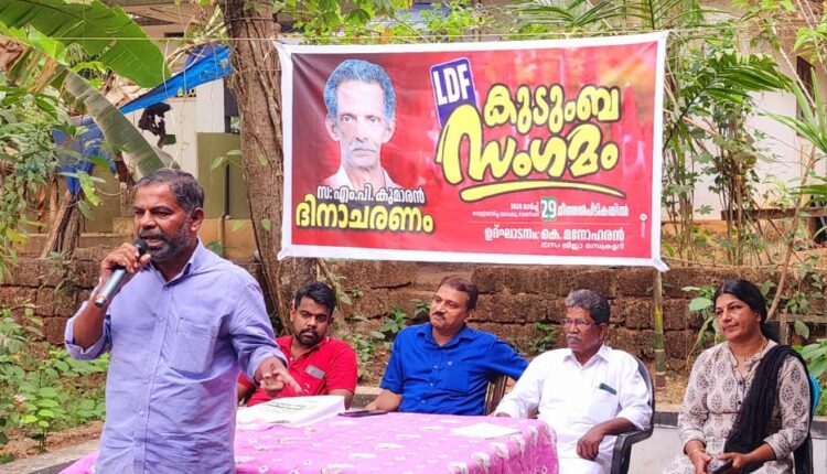 പാനൂർ: CPIM പ്രാദേശിക നേതാവായിരുന്ന എം.പി കുമാരൻ്റെ ഒന്നാം ചരമവാർഷികവും, LDF കുടുബ സംഗമവും കൊച്ചിയങ്ങാടിയിൽ നടന്നു, CPIM ജില്ലാ കമ്മിറ്റി അംഗം കെ. മനോഹരൻ ഉദ്ഘാടനം ചെയ്യ്തു, എൻ.അനൂപ് അനുസ്മരണ പ്രഭാഷണം നടത്തി, കെ.ബാലൻ അദ്ധ്യക്ഷത വഹിച്ചു, എൻ.കെ ശോഭന സ്വാഗതം പറഞ്ഞു, കെ.ടി.കെ മനീഷ്, പി.പി ജാബിർ, കെ.സുബീഷ് എന്നിവർ സംസാരിച്ചു