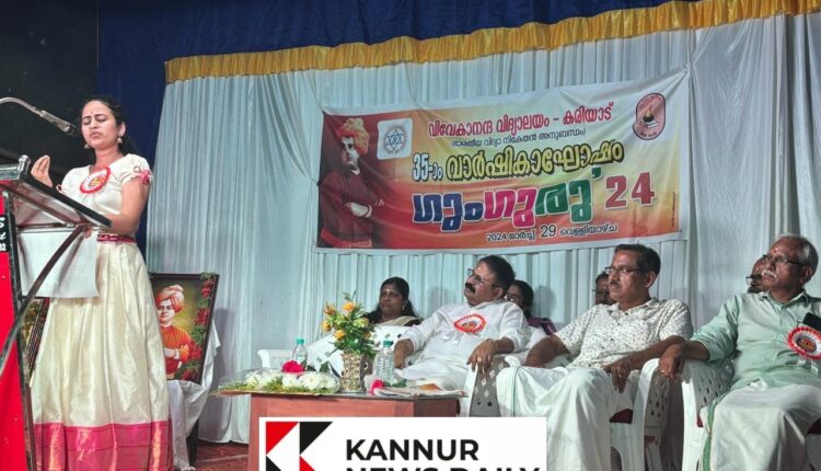 പാനൂർ : കരിയാട് വിവേകാനന്ദ വിദ്യാലയം 35 ->മത് വാർഷികാഘോഷം (ഗുംഗുരു 24) ആഘോഷിച്ചു. യുവ ഗായിക സൂര്യഗായത്രി ദീപപ്രജ്വലനം നടത്തി. വിദ്യാലയ സമിതി പ്രസിഡന്റ് രവീന്ദ്രന്റെ അധ്യക്ഷതയിൽ ഭാരത് ലജ്ന കോ. ഓപ്പ്റേറ്റീവ് സൊസൈറ്റി. ഡി ജി എം ജ്യോതിപ്രകാശ് ഉദ്ഘാടനം ചെയ്തു. വിദ്യാലയ സമിതി സെക്രട്ടറി പി. വി. സുരേഷ് ബാബു സ്വാഗതം പറഞ്ഞു. പ്രധാനാദ്ധ്യാപിക വി. ദീപ, വിദ്യാഭാരതി ദക്ഷിണ ഭാരത സെക്രട്ടറി എൻ. സി. ടി. രാജഗോപാൽ, മാതൃസമിതി പ്രസിഡണ്ട് ബിന്ദു ജയപ്രകാശ് എന്നിവർ സംസാരിച്ചു. ശേഷം വിദ്യാർത്ഥികളുടെ കലപരിപാടികളും നടന്നു.