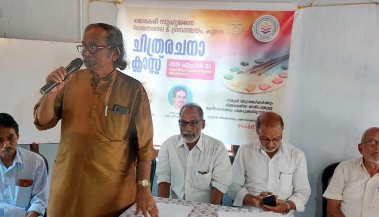 പാനൂർ : മൊകേരി സുഹൃജ്ജനവായനശാല ആൻറ് ഗ്രന്ഥാലയത്തിൻ്റെ ആഭിമുഖ്യത്തിൽ വിദ്യാർത്ഥികൾക്കുള്ള ചിത്രരചനാ പരിശീലന ക്ലാസ് ആരംഭിച്ചു. പ്രശസ്ത ചിത്രകാരൻ പ്രേമൻ പൊന്ന്യം ഉദ്ഘാടനം ചെയ്തു.കെ.കുമാരൻ അദ്ധ്യക്ഷത വഹിച്ചു.കെ.ശ്രീധരൻ ക്ലാസ് വിശദീകരണം നടത്തി. കെ.ഖാദർ ഹാജി, ഇ.കുഞ്ഞി മൂസ്സ, പി.ജയരാജൻ, എൻ.വിജയൻ, സി.കെ.ശശിധരൻ, വി.ശ്രീധരൻ എന്നിവർ സംസാരിച്ചു. കെ.കെ.ഷിബിൻ സ്വാഗതവും കെ.രാജേഷ് നന്ദിയും പറഞ്ഞു